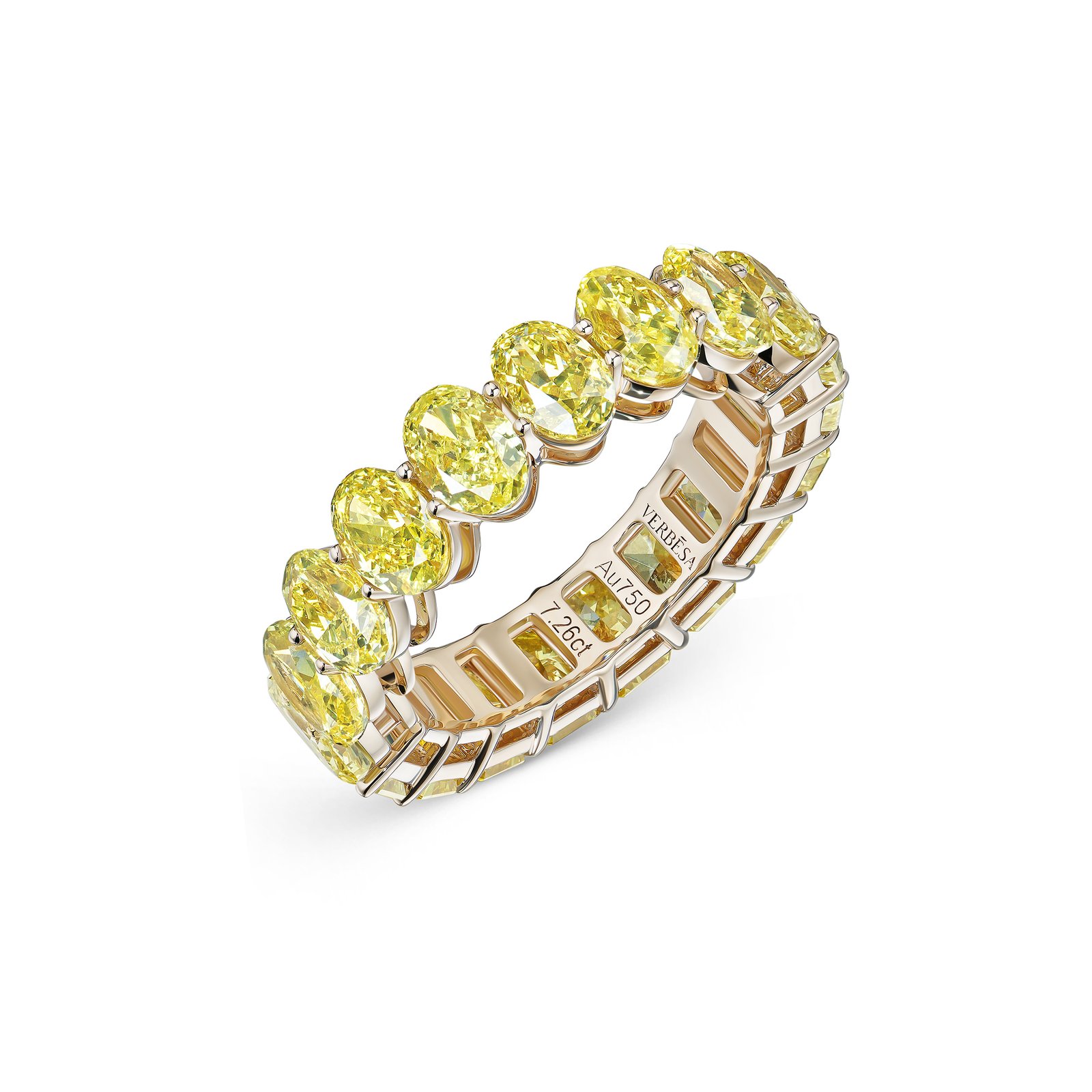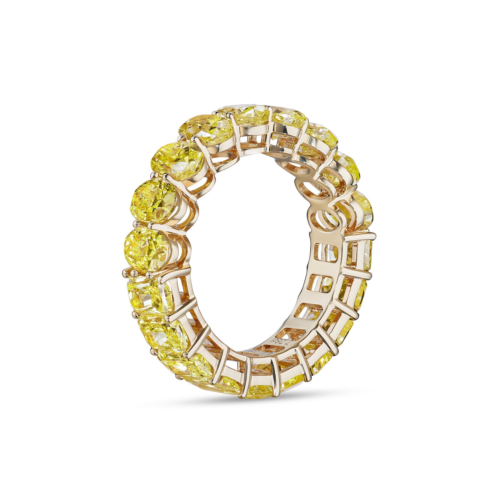 A striking eternity band featuring lab-grown diamonds, each 0.4 carats, in a captivating mix of radiant and oval cuts. Set in luminous 18k yellow gold, the design celebrates bold color and modern craftsmanship. A brilliant expression of elegance with a contemporary edge.