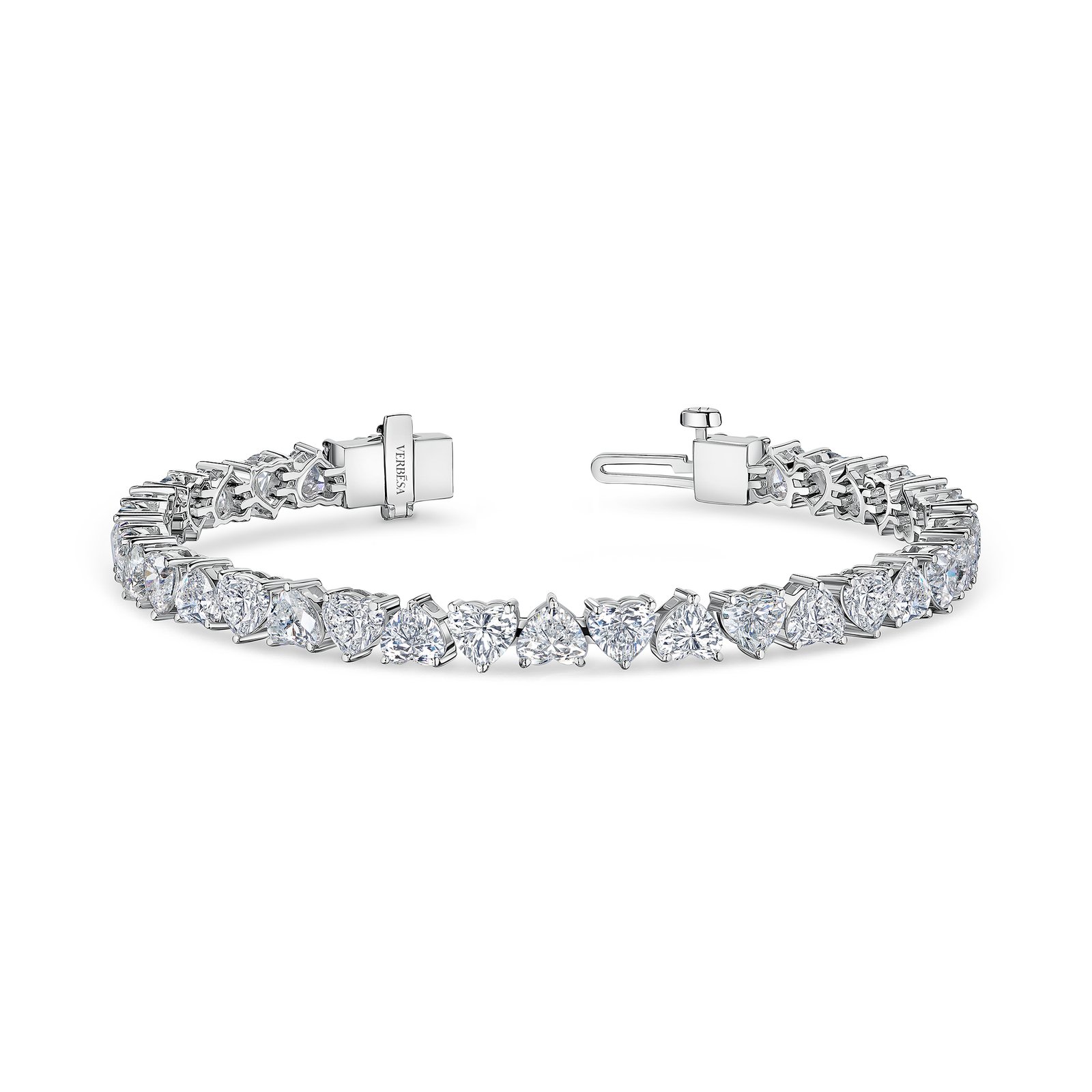 A romantic tennis bracelet featuring 0.4 carats heart cut lab-grown diamonds, each radiating brilliance and fire. Expertly set in platinum, the design flows with fluidity and grace. A modern symbol of true love